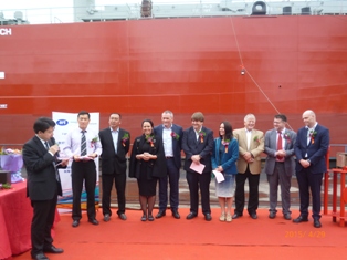 我司為船東Lighthouse建造的64000DWT散貨輪(船體號(hào):HT64-131)于2015年4月29日舉行了交船儀式,該船入DNV·GL船級(jí)社。常務(wù)副總經(jīng)理周義慶及船東、船檢參加該儀式。