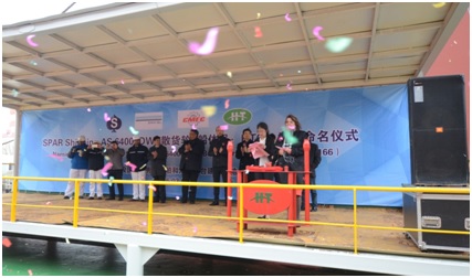 2016年3月9日,我司為挪威船東SPAR建造的64000DWT散貨輪(船體號(hào):HT64-166)舉行命名儀式,該船入DNV船級(jí)社。公司領(lǐng)導(dǎo)、船東、船檢和貿(mào)易公司參加該儀式。