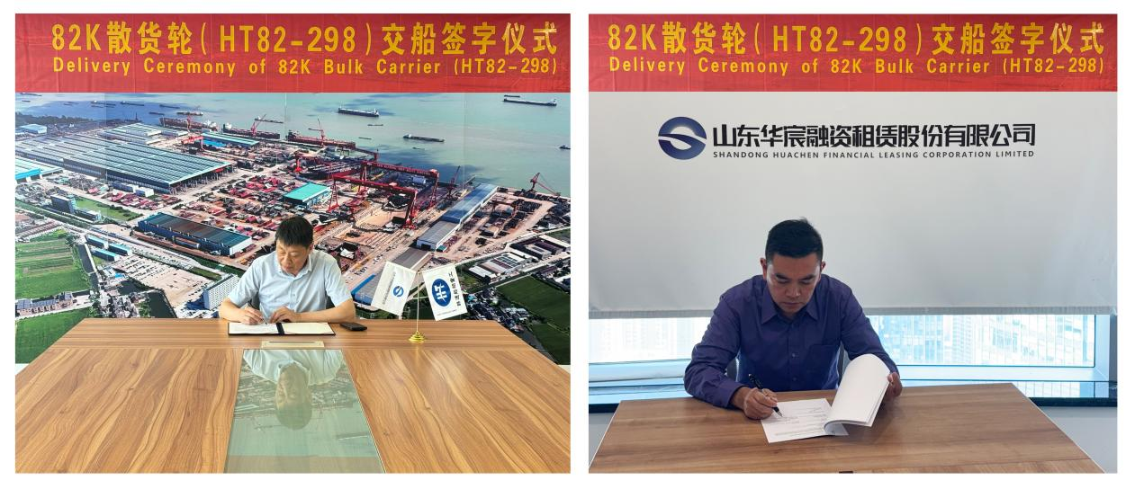 2025年5月28日,在各方代表的共同見證下,我司為華宸船東建造的第10艘82000噸級散貨船(船體編號:HT82-299)“山東鑫澤”輪正式簽字交付。這艘入級中國船級社(CCS)的“海...